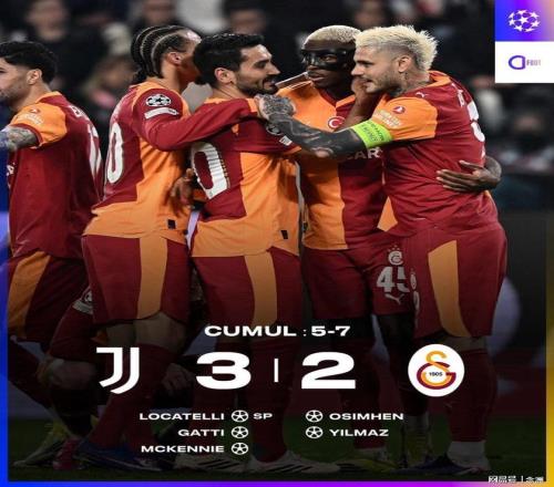 尤文圖斯主場3-2加拉塔薩雷,總比分5-7出局。加拉塔薩雷晉級(jí)16強(qiáng),將對陣熱刺或利物浦。托雷拉送點(diǎn),洛卡特利點(diǎn)射,凱利被直紅罰下,卡盧盧助攻加蒂破門,麥肯尼再下一城,總比分5-5進(jìn)入加時(shí)。加時(shí)賽上半場奧斯梅恩破門,下半場伊爾馬茲再下一城。