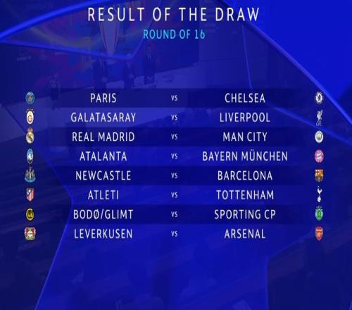 經(jīng)過2天比賽的爭奪,本賽季歐冠淘汰賽附加賽已經(jīng)結束了全部比賽的角逐;馬競、博德閃耀、勒沃庫森、紐卡、亞特蘭大、大巴黎、皇馬、加拉塔薩雷在內的八家俱樂部擊敗了各自的對手,成功躋身淘汰賽。與此前獲得前八的8隊組成了本賽季的歐冠16強;北京時間2月27日晚,歐冠淘汰賽抽簽儀式在瑞士尼翁的歐足聯(lián)總部進行,經(jīng)過抽簽之后,誕生了皇馬VS曼城、大巴黎VS切爾西、巴薩VS紐卡斯爾3組重磅對決。