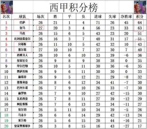 積分榜方面,皇馬先賽絕殺贏球,終于是止住了連敗的頹勢,暫時差巴薩1分,還是穩(wěn)居第2。塞爾塔無力在皇馬身上搶到分數(shù),還是差貝蒂斯3分,無緣沖進前5。