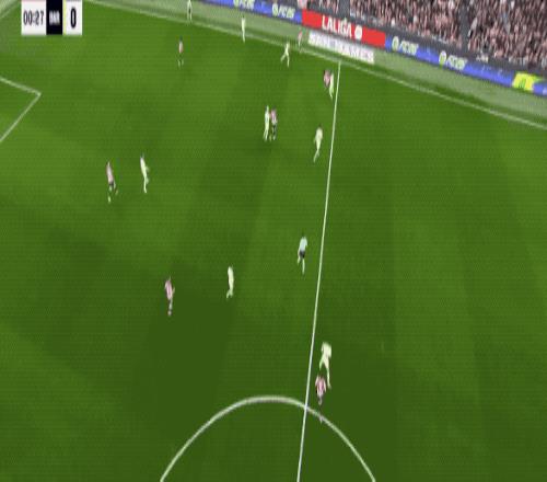 開(kāi)場(chǎng)不到20秒,面對(duì)畢爾巴鄂的傳中,坎塞洛的解圍擊中門框,這也是兩隊(duì)上半場(chǎng)最接近破門的機(jī)會(huì)。