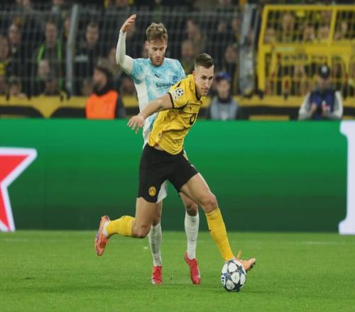 同組強(qiáng)敵云集,博德閃耀似乎是送分童子,首戰(zhàn)客場2-2戰(zhàn)平布拉格斯拉維亞,次輪主場2-2平熱刺,接下來3連敗到了出局的邊緣,最后3輪連戰(zhàn)多特蒙德、馬競、曼城,他們竟然2勝1平不敗拿到了7分。