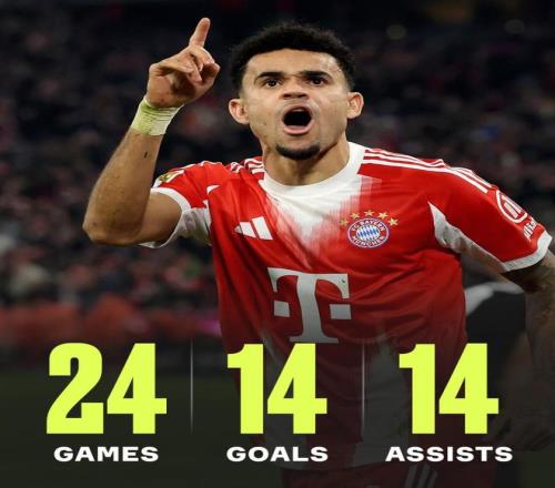 第34分鐘。穆西亞拉在中場帶球推進后分球,格雷茨卡禁區(qū)前沿送出挑傳,路易斯·迪亞斯高速插上凌空抽射打破僵局,拜仁1-0領(lǐng)先。