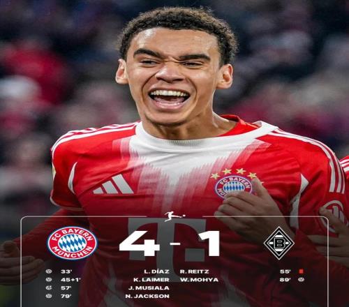 最終,拜仁4-1輕松取勝,不僅完成對門興的賽季雙殺,還豪取各項賽事6連勝。在積分榜上,南大王的領(lǐng)先優(yōu)勢已經(jīng)擴大到14分,德甲冠軍幾乎沒有懸念。