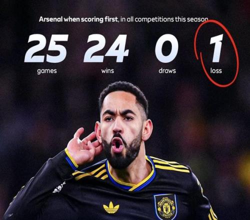 英超第23輪,阿森納主場2-3不敵曼聯(lián),這是阿森納本賽季英超首次在先進球的比賽中輸球,此前24場全勝。