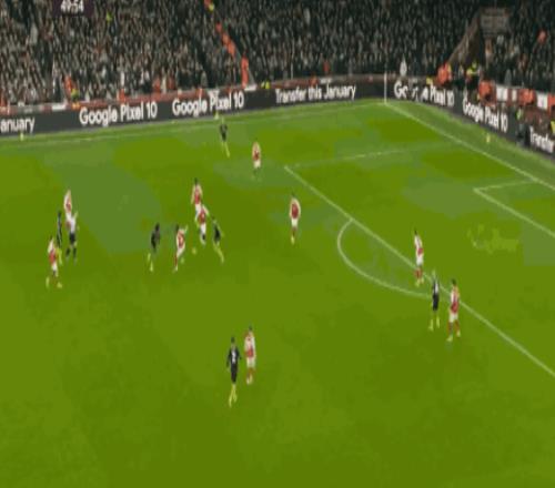 這一場強強對話開打之后,阿森納就憑借主場之利,大舉壓上給紅魔的后防施壓,第9分鐘特羅薩德就利用角球機會,完成了一腳禁區(qū)內(nèi)的掃射,但皮球沒有壓住直接飛出底線,5分鐘之后,賴斯反擊中的打門,又被利桑德羅馬丁內(nèi)斯擋出,第18分鐘賴斯前場右側(cè)定位球開出,蘇維門迪極具威脅的頭球,被拉門斯神撲化解。