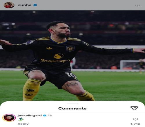 賽后庫(kù)尼亞在社媒曬出了自己的慶祝照片,林加德也在社媒積極互動(dòng),他回復(fù)了?♂?的表情包。