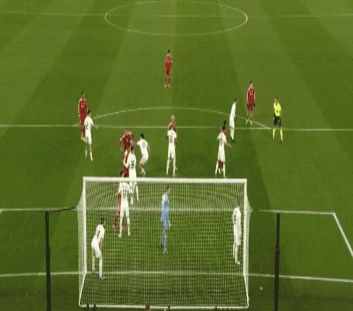 第14分鐘,利物浦獲得角球機會,?;倏藫尩角包c,范迪克的頭球變成助攻,麥卡利斯特的頭球已經(jīng)越過門線,門將才將球撲出,進球有效。