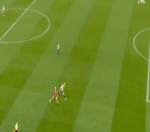 第43分鐘,凱爾凱茲左路長(zhǎng)傳,?;倏思铀贇⑷虢麉^(qū),外腳背射門(mén)打了對(duì)手一個(gè)措手不及,波普下地慢了半拍,皮球鉆入死角。僅用2分鐘,?;倏嗣烽_(kāi)二度,利物浦2-1反超。
