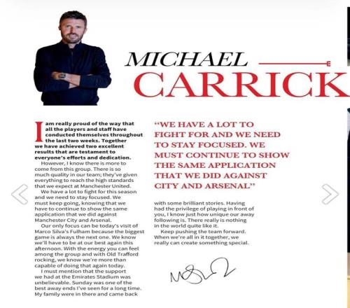 曼聯(lián)取得兩連勝后排名英超第四,但切爾西和利物浦本輪取勝后,已經(jīng)暫時(shí)超越紅魔,卡里克和他的球隊(duì)必須在剩余15場(chǎng)比賽取得好結(jié)果,才能確保重獲歐冠資格??ɡ锟瞬⑽匆?yàn)榻舆B擊敗強(qiáng)隊(duì)而沾沾自喜,他知道馬爾科·席爾瓦的富勒姆會(huì)帶來(lái)與瓜迪奧拉的曼城、阿爾特塔的阿森納不同的挑戰(zhàn)。