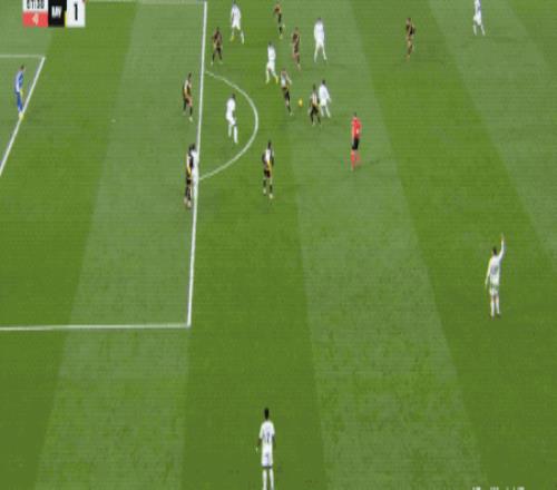 第15分鐘,皇馬打出快速反擊,維尼修斯沿著左路進入禁區(qū),以一敵三,兜射遠角,打破僵局。