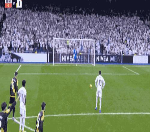 B費主罰,卡塞米羅高高躍起,力壓昆卡,頭槌破門。