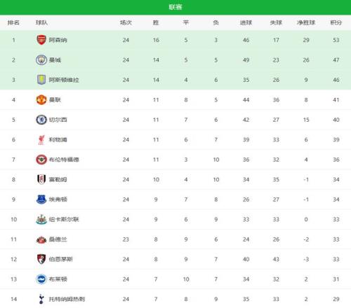 隨著曼聯(lián)32+曼城22爆冷!英超最新積分榜:維拉丟分紅魔回前四