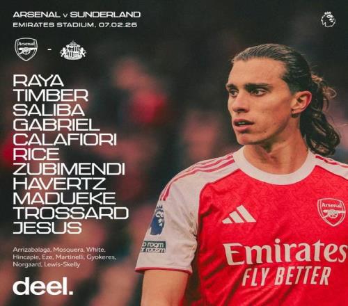 阿森納vs桑德蘭:哈弗茨、馬杜埃凱首發(fā),卡拉菲奧里出戰(zhàn)