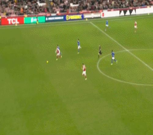 第42分鐘,特羅薩德左路連續(xù)突破后倒三角回敲,蘇維門迪禁區(qū)外迎球怒射,皮球擊中立柱內(nèi)側(cè)彈入球網(wǎng),阿森納1-0領(lǐng)先;徹底點燃了酋長球場。