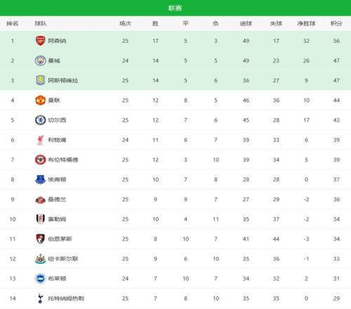 隨著阿森納30+切爾西31!英超最新積分榜:曼聯(lián)4連勝,維拉爆冷