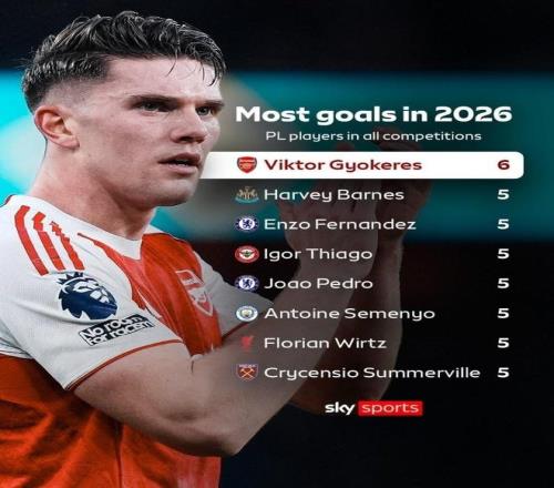 據(jù)統(tǒng)計,進入2026年后,約克雷斯在各項賽事中已經(jīng)貢獻了6球2助攻,是同期英超球員中參與進球最多的球員。