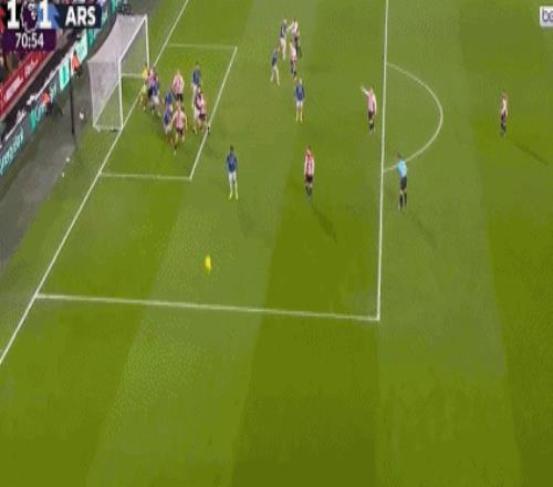 第61分鐘,阿森納界外球攻勢,卡約德解圍被斷,因卡皮耶左路下底傳中,馬杜埃凱搶點頭球吊射,凱萊赫鞭長莫及,槍手打破僵局,1-0!