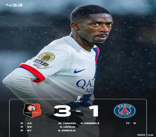 法甲第22輪,巴黎圣日耳曼客場(chǎng)1-3不敵雷恩,終結(jié)聯(lián)賽7連勝。杜埃錯(cuò)失單刀良機(jī),塔馬里首開(kāi)紀(jì)錄,勒波爾擴(kuò)大領(lǐng)先優(yōu)勢(shì),登貝萊扳回一城,恩博洛鎖定勝局。