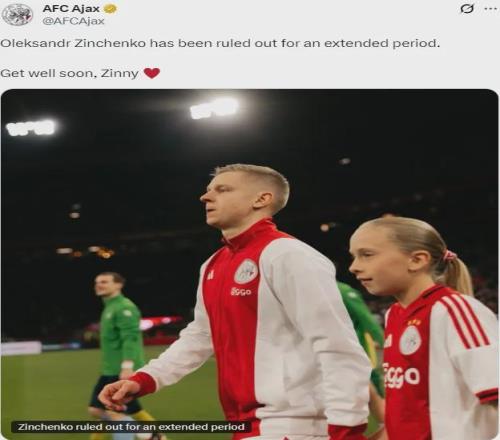 曾官方:阿賈克斯宣布津琴科上場比賽膝蓋受傷,經(jīng)診斷需要接受手術(shù),并且本賽季無法再出戰(zhàn)比賽(he will not play again this season)。