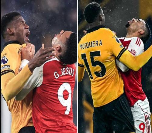 在這場(chǎng)跌宕起伏的英超平局賽后狼隊(duì)與阿森納的球員爆發(fā)了沖突,熱蘇斯本來(lái)倒地不起,聽(tīng)到終場(chǎng)哨響后跳起來(lái)和對(duì)手爆發(fā)肢體沖突。