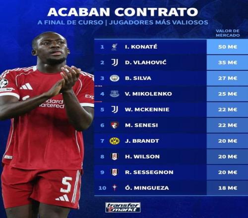 北京時間2月20日,德轉(zhuǎn)列出了現(xiàn)有合同今年6月到期德轉(zhuǎn)身價最高的10名球員,利物浦中衛(wèi)科納特以5000萬歐元排名第一,尤文圖斯前鋒弗拉霍維奇3500萬歐元第二,曼城隊長伯納多-席爾瓦2700萬歐元第三。