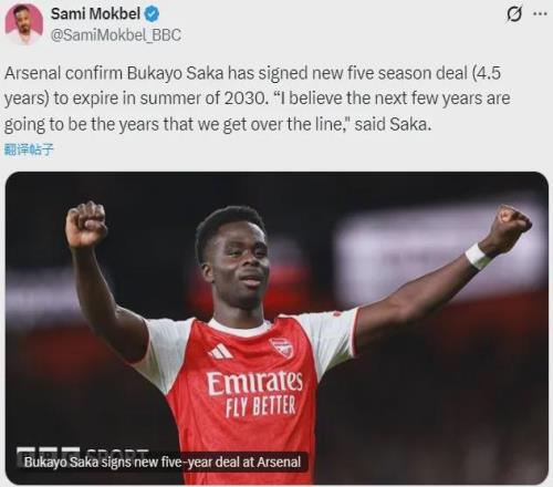 根據(jù)BBC記者SM的說法,薩卡的新合同其實是2030年夏天到期(4.5年)。