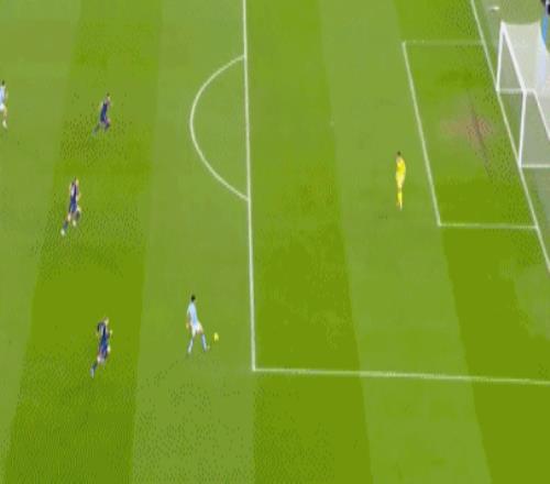 第79分鐘,福登又送出妙傳,艾特-努里左路插上形成單刀,但臨門一腳卻雙腿發(fā)軟踉蹌倒地,波普出擊將球沒(méi)收。