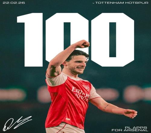 里程碑,賴斯迎來阿森納生涯第100場英超比賽