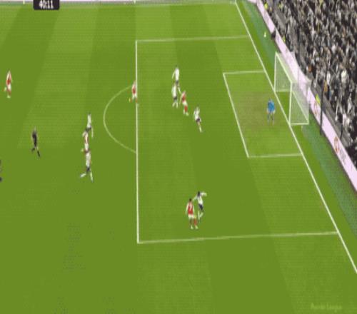 第32分鐘,廷貝爾策動進攻,薩卡過掉薩爾后倒三角傳中,埃澤停球并不舒服,但有足夠的時間抽射破門。