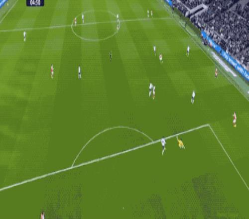 第36分鐘,薩卡形成單刀,維卡里奧出擊,用身體將球擋出。