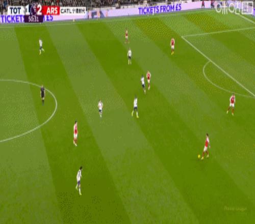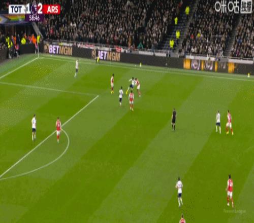 第47分鐘,下半場夢幻開局!哲凱賴什遠射破門!阿森納客場2-1領先熱刺!