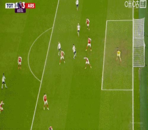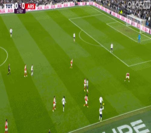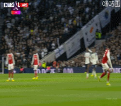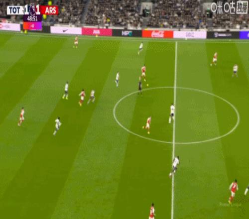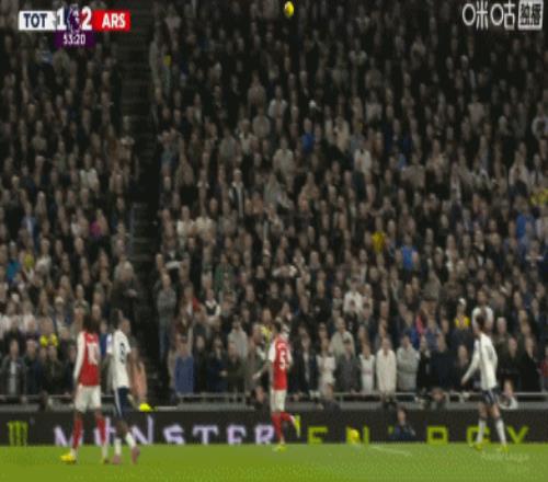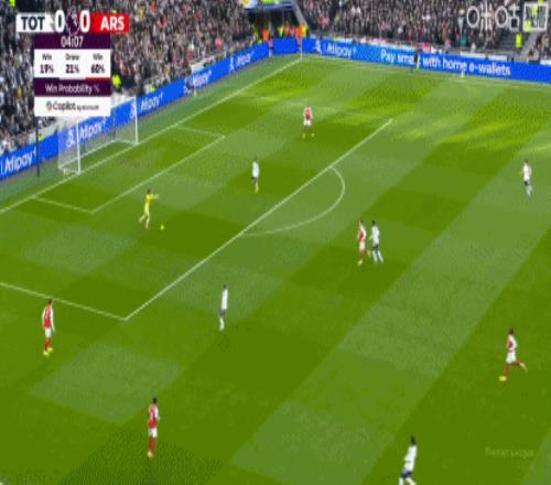 第34分鐘,賴斯帶球失誤被斷,穆阿尼破門!熱刺1-1扳平阿森納!