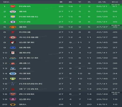 英超最新積分榜