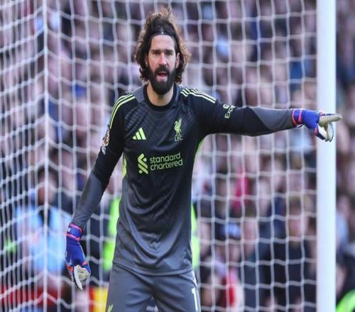 利物浦門將阿利松主動走向主教練,示意他改變陣型。