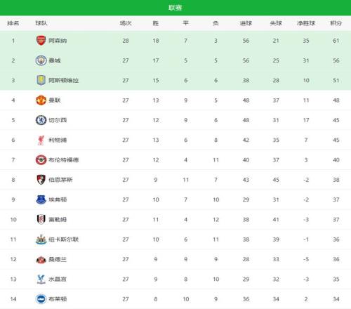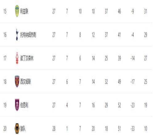 第四,僅落后第3名維拉3分,拿下歐冠席位越來越有戲。