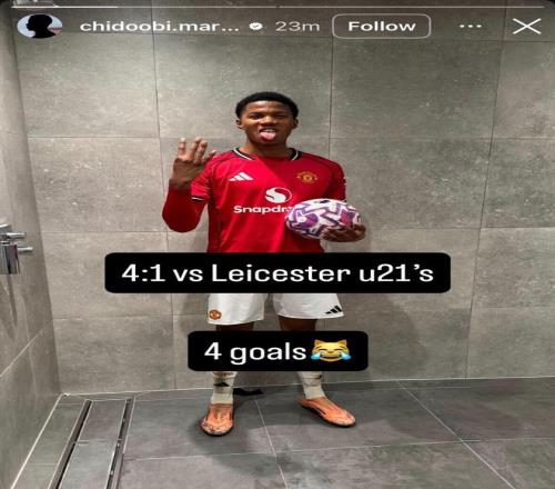 周一,當(dāng)曼聯(lián)一線隊(duì)客場對(duì)陣埃弗頓時(shí),小將奇多?奧比在U21對(duì)陣萊斯特城的比賽中狂轟4球。上賽季從阿森納加盟曼聯(lián)后,奧比就被球隊(duì)迅速提拔至一線隊(duì),當(dāng)時(shí)阿莫林的球隊(duì)正苦于鋒線無力。