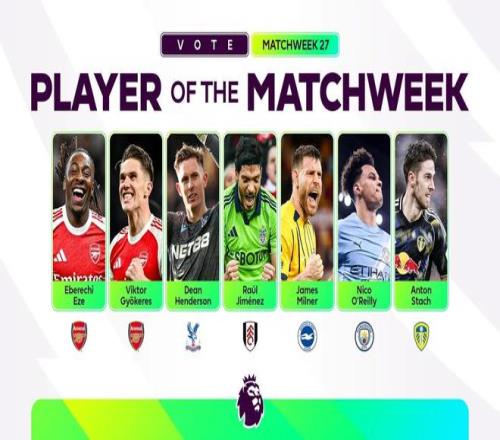 北京時間2月24日,英超官方公布了聯(lián)賽第27輪最佳球員候選名單,這7名球員為埃澤、哲凱賴什、迪恩-亨德森、勞爾-希門尼斯、米爾納、奧賴利、施塔赫。