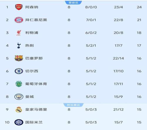 1,本賽季歐冠,率先晉級(jí)16強(qiáng)的八支球隊(duì)中,英超成為大贏家。阿森納、曼城、切爾西、利物浦和熱刺,足足5支豪門直接挺進(jìn)。英超球隊(duì)展現(xiàn)了極強(qiáng)的沖擊力,以及細(xì)膩程度很高的傳控配合。除此以外,德甲的拜仁,西甲的巴薩,以及葡萄牙的葡萄牙體育,也直接晉級(jí)。