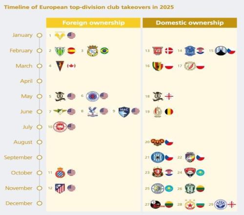 2025年,美資收購了9家歐洲頂級聯(lián)賽俱樂部,勢力版圖進一步擴張。