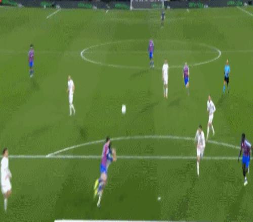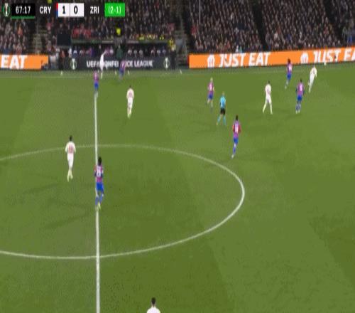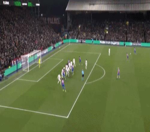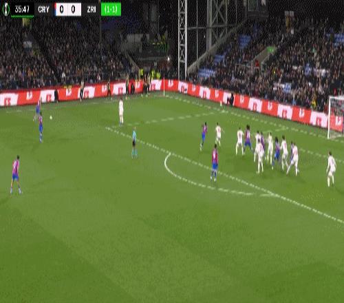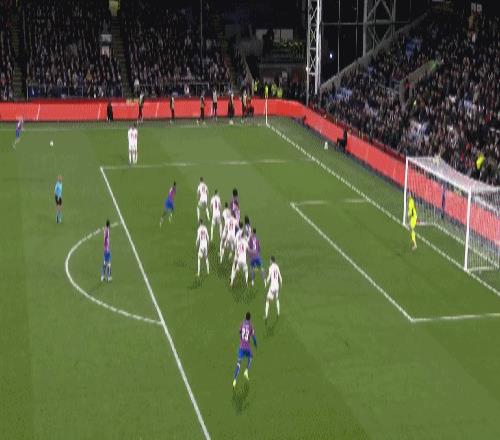 第36分鐘,拉克魯瓦禁區(qū)躍起頭球破門,水晶宮1-0領(lǐng)先