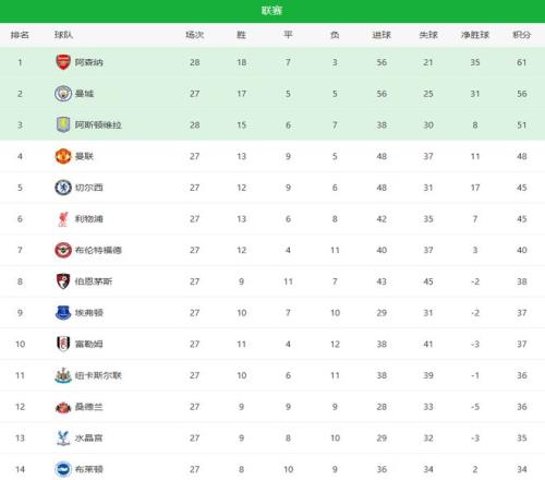 隨著倒數(shù)第一20爆冷+曼聯(lián)笑納!英超最新積分榜:維拉5輪丟10分