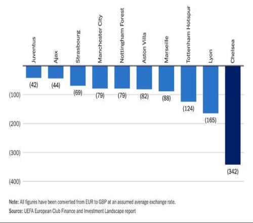 在這份歐洲單季虧損前十的榜單中,除了切爾西,還有熱刺、阿斯頓維拉、諾丁漢森林和曼城這四支英超球隊(duì)上榜。
