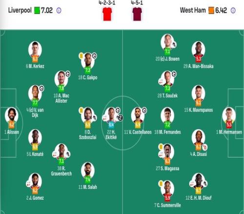 利物浦首發(fā):1-阿利松、2-戈麥斯(76'30-弗林蓬)、4-范戴克、5-科納特、6-凱爾凱茲、8-索博斯洛伊、10-麥卡利斯特、38-赫拉芬貝赫(85'42-尼奧尼)、11-薩拉赫、18-加克波、22-?;倏耍?6'73-恩古莫哈)