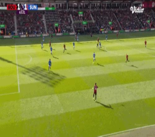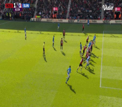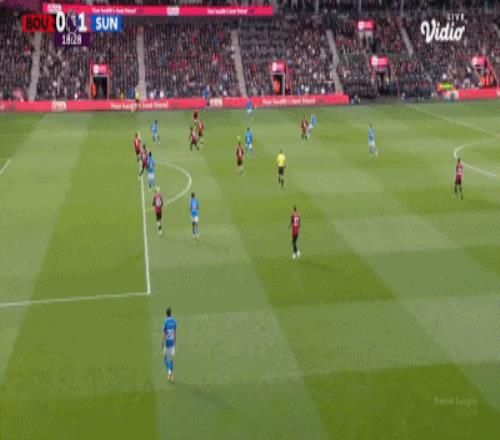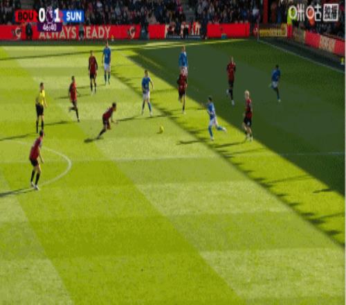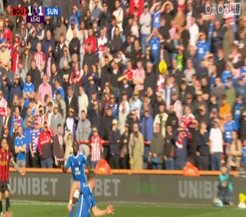 第63分鐘,扳平比分,埃萬尼爾松肩部進球,伯恩茅斯1-1桑德蘭