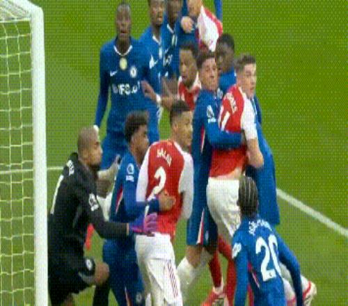 上半場第21分鐘,阿森納贏得第一個角球,結(jié)果就進球了。當時后點的加里布埃爾頭球頂?shù)介T前,薩利巴接力,最終皮球砸到切爾西球員身體后彈進大門,主隊1-0領(lǐng)先。詭異是的,半場結(jié)束前,在角球防守中因卡皮耶不幸烏龍,阿森納罕見吃了角球的虧,雙方1-1回到更衣室。