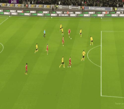第94分鐘,阿利松開球被攔截,特林達(dá)德的射門打在戈麥斯的腿上產(chǎn)生折射,狼隊打進(jìn)絕殺。
