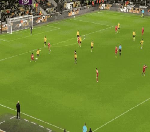 第78分鐘,狼隊(duì)后場(chǎng)長(zhǎng)傳發(fā)動(dòng)反擊,范戴克解圍竟然頂空,阿羅科達(dá)雷順勢(shì)送出手術(shù)般直塞,羅德里戈·戈麥斯單刀面對(duì)阿利松冷靜挑射得手,狼隊(duì)1-0利物浦。