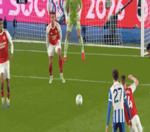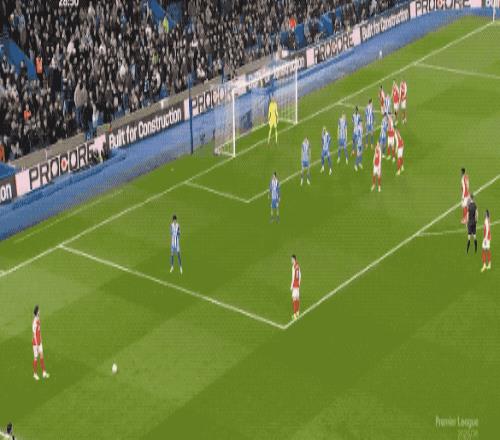 第29分鐘,阿森納獲得前場左側的任意球,賴斯高舉左臂,虛晃一槍直接射門,皮球稍稍高出。
