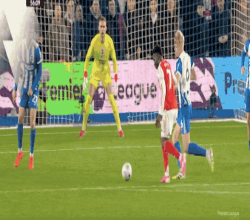 第9分鐘,阿森納本場半場搶斷,接到廷伯的傳球,薩卡橫向擺脫后的射門打在巴萊巴的身上有明顯的變向,維爾布魯根撲救不及。