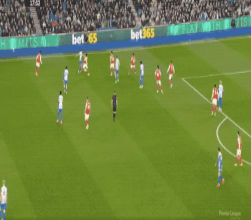 第88分鐘,布萊頓造越位失誤,哈弗茨選擇自己小角度射門,維爾布魯根封住了近角。